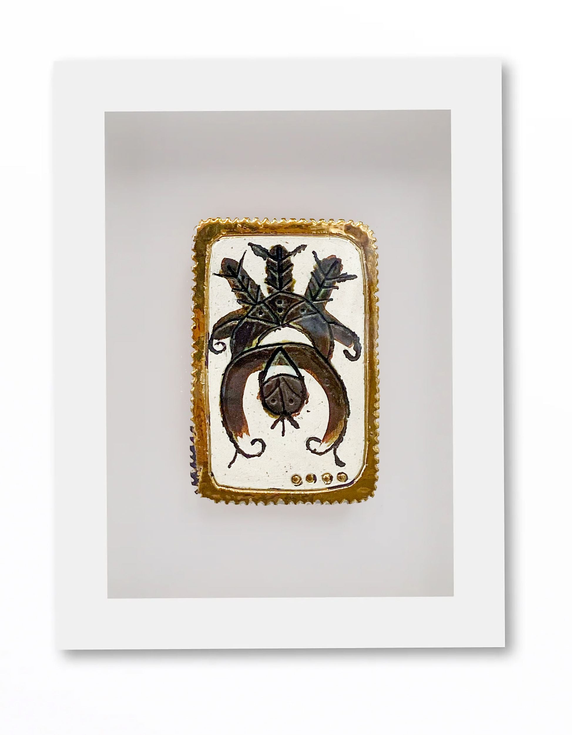 The ceramic and gold-framed “Game” pieces function like collectible cards or talismans within the larger installation— portable fragments of memory that distills the exhibition's visual language into a single, intimate object meant to be held and carried.