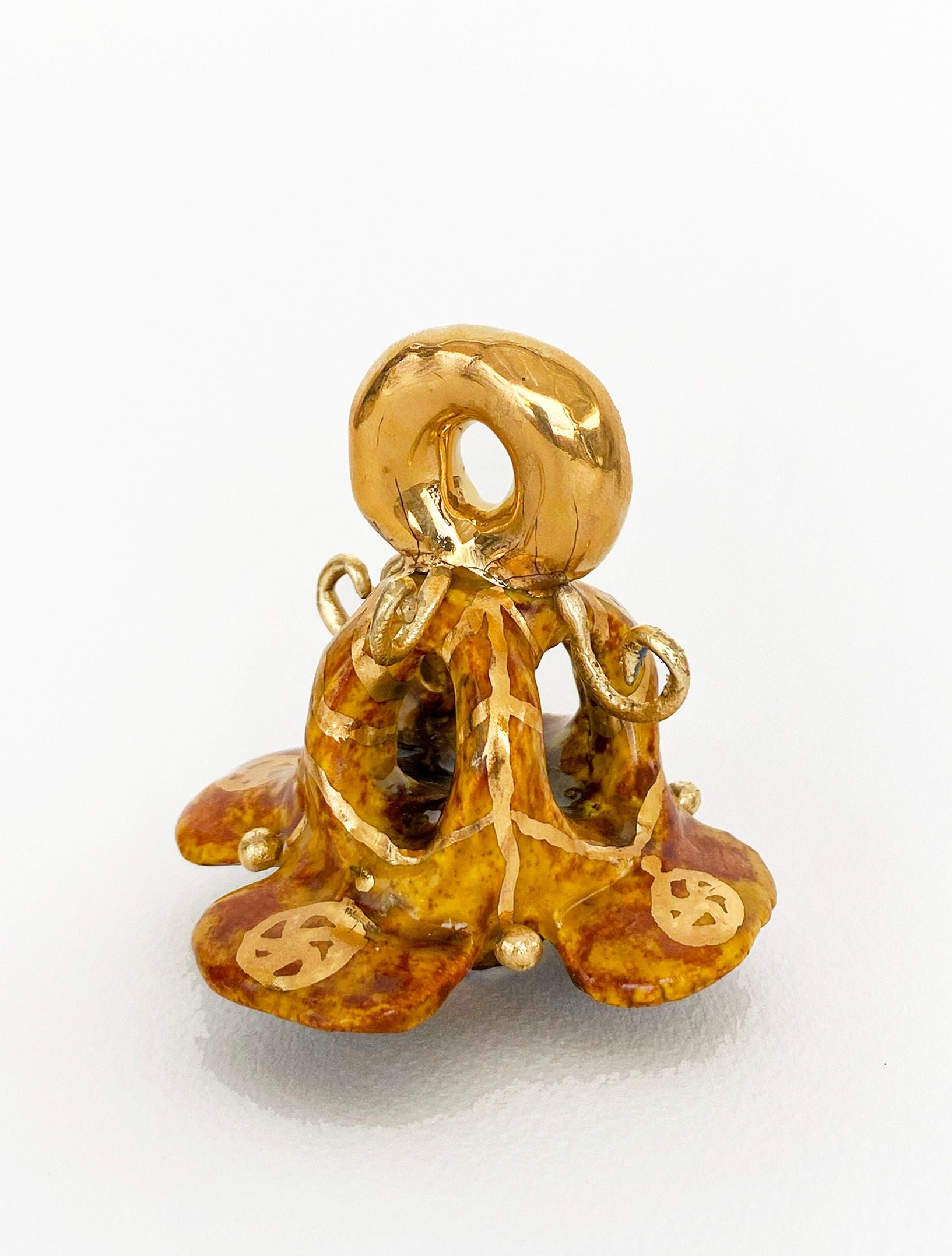 Glazed ceramic, luster, plastic and 24k gold leaf