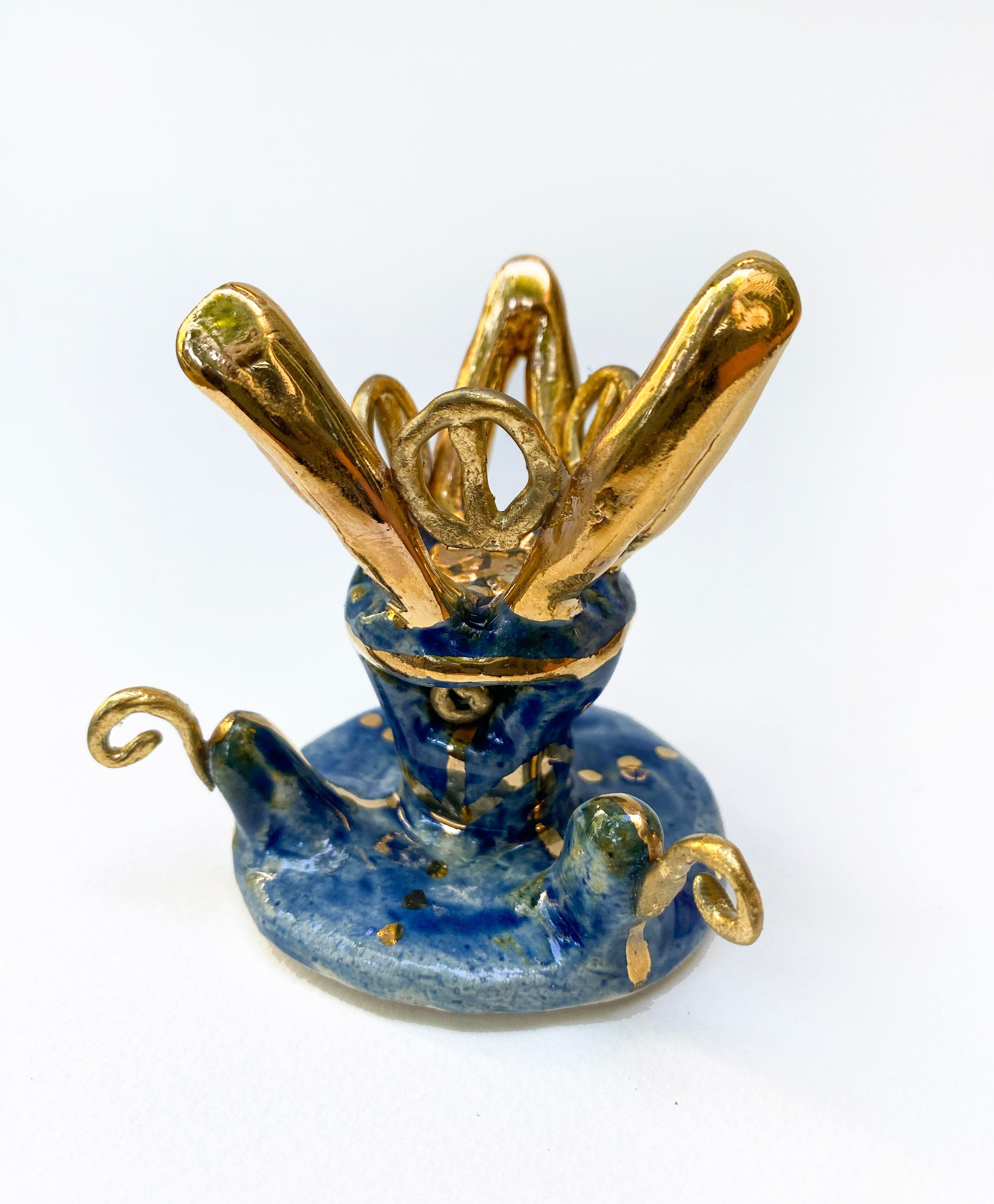 Glazed ceramic, luster, plastic and 24k gold leaf