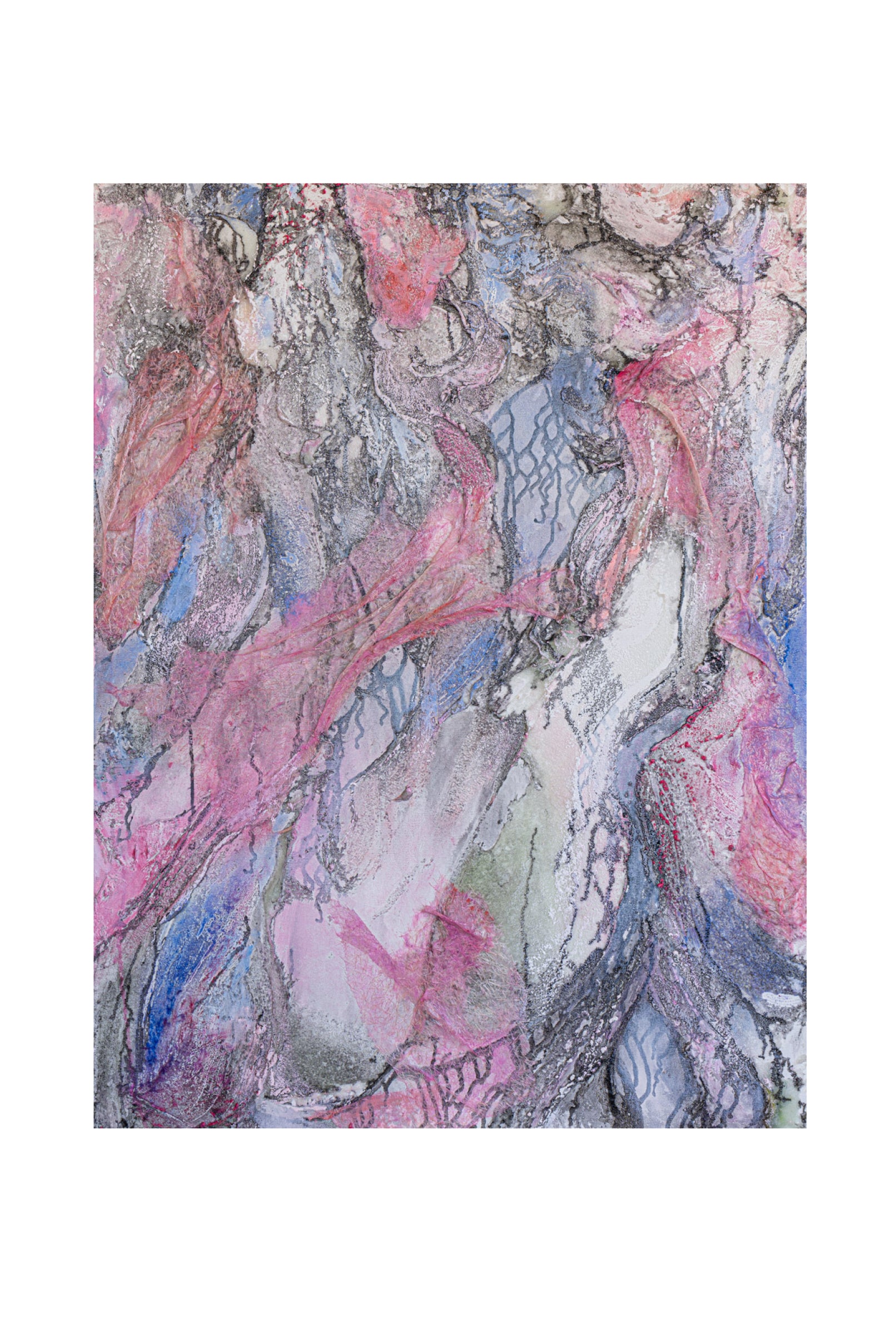 "Pink Moss 3" is a pastel, textured work. It is part of my Coral Reef series. This series is deeply personal—it brings together my love for the ocean, my experience as a diver, and my commitment to protecting the planet. Coral reefs, with all their color, movement, and delicate balance, have become the language I use to express both wonder and urgency. Using a mix of watercolor, oil, acrylic, collage, and even bits of plastic, I’ve developed a process that feels just as layered and fragile as the reefs themselves. The textures and forms mimic not only the beauty of these ecosystems but also the debris and disruption they face. I’m always experimenting—letting materials interact in unexpected ways to reflect both the fluidity of water and the impact of climate change.
