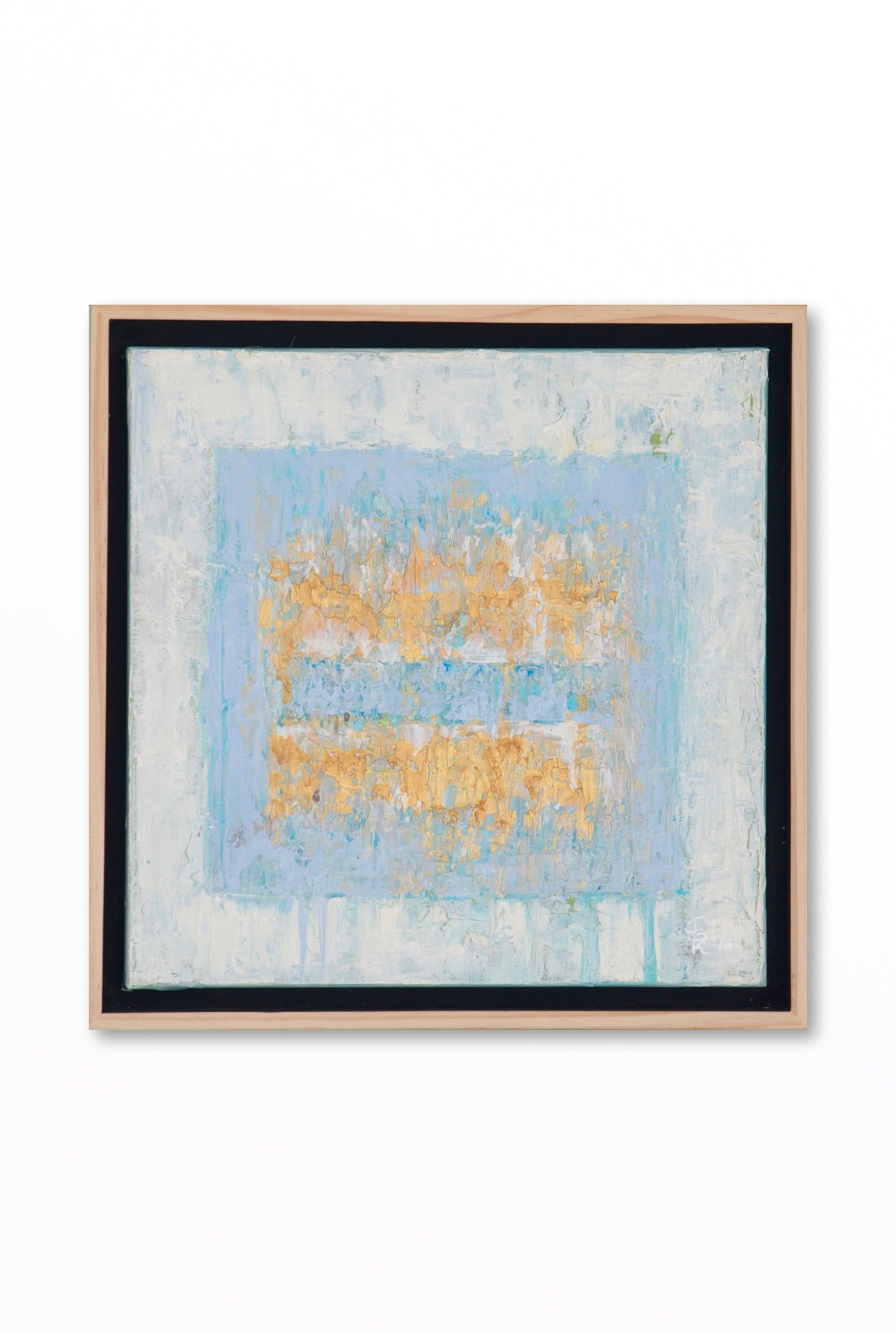 "Ice Cube Small 1" from my Ice Cube series is oil on canvas. The Ice Cube series uses a simple geometric shape to explore boundaries and the strength needed to overcome them. The molten gold at the center symbolizes an inner fire breaking through limits, while drips represent lingering memories of those challenges. The "equal sign" reflects the balance needed to navigate adversity. Though the shapes are straightforward, each piece is layered with texture and detail, capturing the complexity and flow of personal transformation and resilience.
