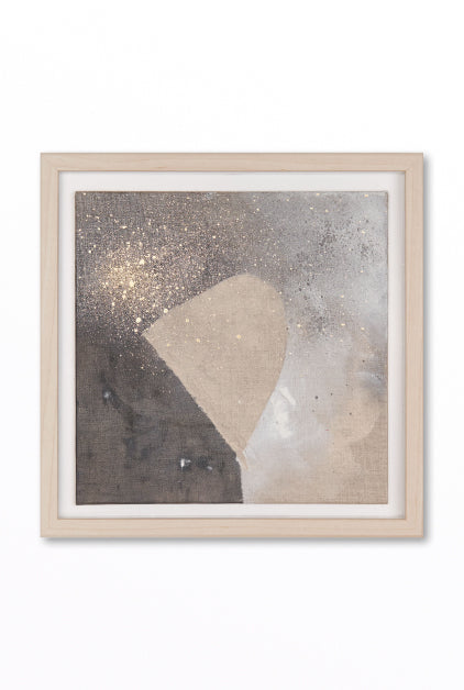 Ink, pastel, acrylic and spray paint on canvas in wood float frame. 10.5 x 10.5