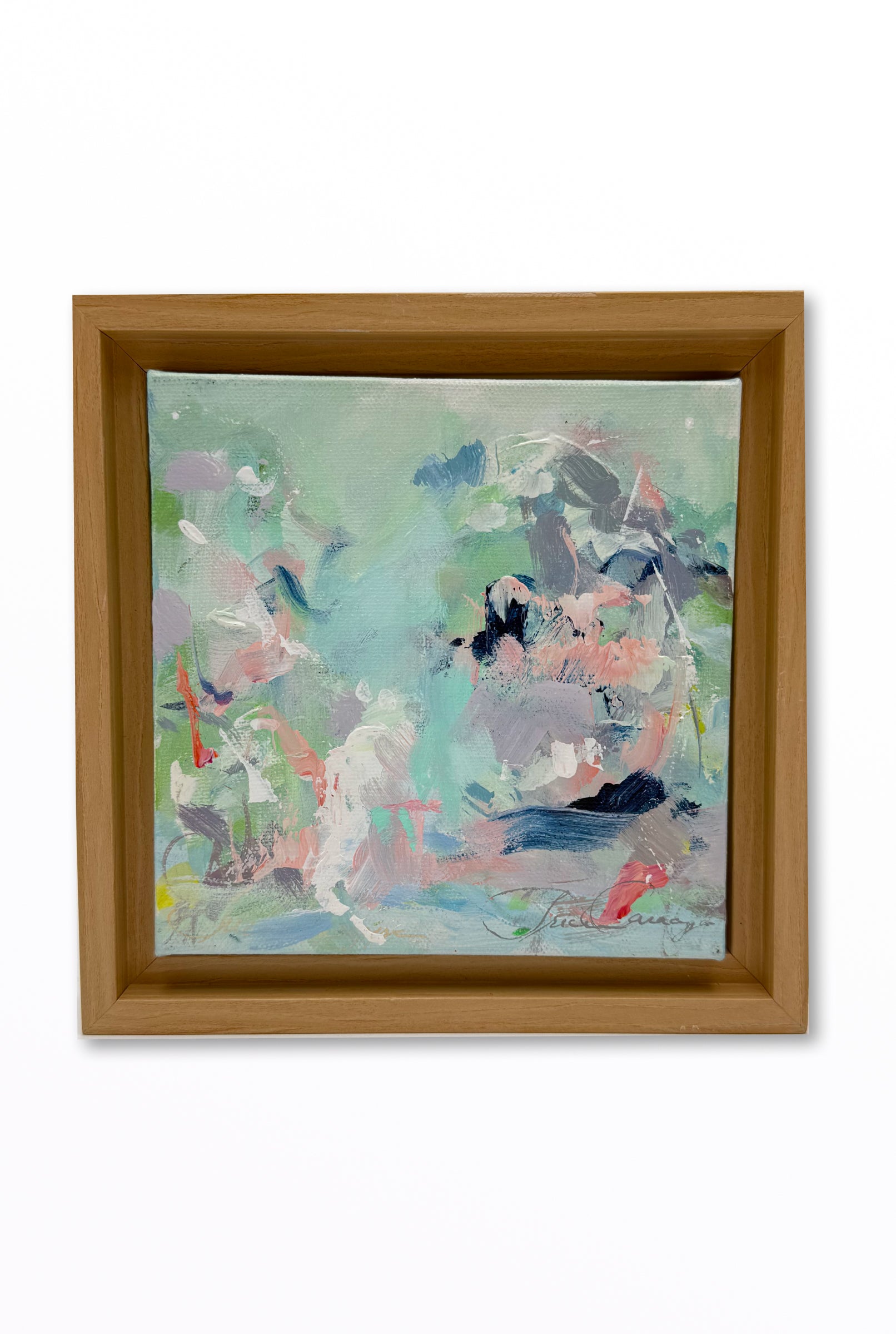Acrylic and oil pastel on canvas, maple frame. 6x6 and 7.5x7.5 framed.
